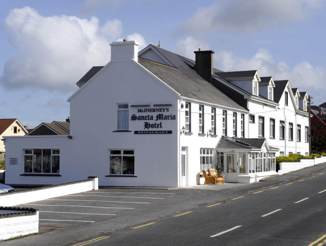 The McInerney family have welcomed holidaymakers to the Sancta Maria for over 60 years. With a relaxing ambience, this comfortable hotel has 24 spacious ensuite bedrooms with a TV, hairdryer, and direct dial telephone.